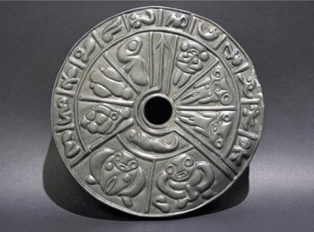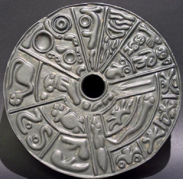 O podivuhodném genetickém kotouči, na kterém je zobrazen vývoj lidského plodu od početí až k narození lidského jedince, informoval světovou veřejnost jako první švýcarský spisovatel Erich von Däniken v roce 1982 ve své knize Strategie bohů. Přesný věk artefaktu není znám, protože je vyroben z černého kamene – lyditu, no několik analýz ukázalo, že by mohl pocházet z předkolumbovského období. Kdo mohl v té době vědět jak pod mikroskopem vypadá lidská spermie?