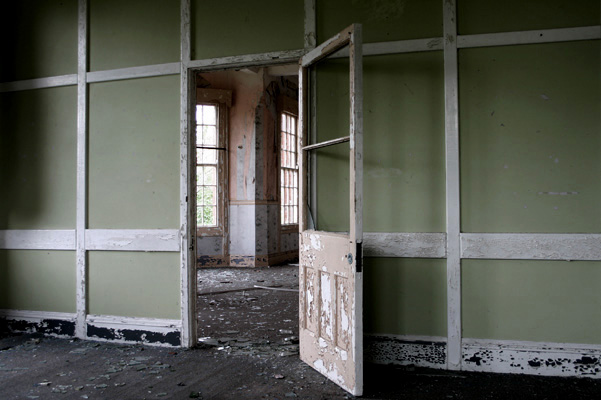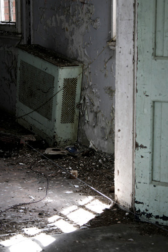 Všude jsou vidět sutiny a je opravdu těžké najít neporušenou skleněnou tabuli oken, nebo dveře, které se nebyly nasazené.