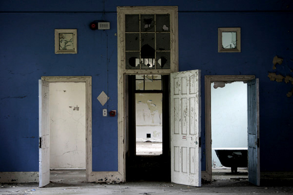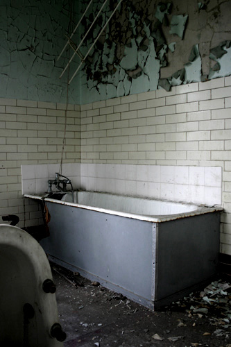 Hellingly Asylum – poslední část Služby pro pacienty v nemocnici byly holé a funkční. Každý den provozu nemocnice s nimi bylo manipulováno, oblečení a ložní prádlo bylo práno a jídlo připravené. Prádelna Kuchyně Holé oddělení Okenice Hlídané koupelny Schátralé kanceláře Pozůstatky polstrované cely