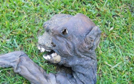 Podle zatvrzelých »ufologů« ale přece jen jde o mimozemšťana. „Vůbec nemá zuby jako pavián. A hlava je celá uvolněná, zatímco nohy úplně pevné,“ tvrdí otec nálezce Llewellyn Dixon.