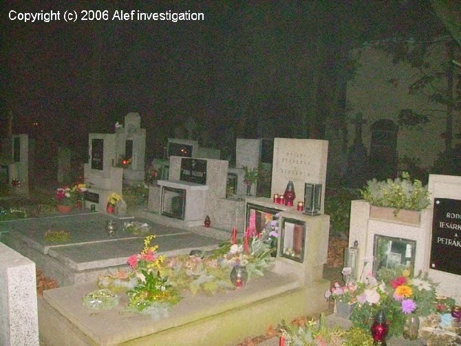 Odpovědět je slušnost a když jsem to nakousl, pak tedy jsem na zdejším hřbitůvku zažil tu zvláštní ʺhru“ stínů. Slyšel kroky, které nikomu nepatří (a věřte, že splést si je s kroky těch pár jedinců, kteří se trošku zapomněli v hospůdce, prostě nejde – ty slyšíte ze silnice a je to tak typické, že to se nedá zaměnit, a pak těmi několika vracejícími se jedinci to končí a dál je klid, jen někdy ještě vzácně projede auto, přeletí letadlo a máte-li štěstí, po nedaleké trati slyšíte lokotraktory s nákladním vlakem). Krom těchto kroků jsme ve třech při jedné výpravě, něco po půl jedné, slyšeli šepot několika hlasů (a musím podotknout, že v nám neznámém, nejspíš snad starobylém jazyce). Ovšem vážně jen z toho místy hrobového ticha, v té chvíli vůbec nedoprovázené typickým a sotva zaměnitelným lomozem někoho, kdo by se až k nám přiblížil zvenčí. Navíc to bylo tak zřetelné a blízko, že byl by-li to někdo z masa a kostí, pak krom toho, že by byl slyšet jejich příchod, museli bychom je i vidět. Za zmínku také stojí, že v jeden podvečer ještě za světla, kdy na hřbitůvku byla jen naše skupinka, se z ničeho nic ozvala slušná rána. Hned vedle nás, jako by někdo udeřil do široké náhrobní desky hrobu, kolem kterého jsme zrovna procházeli. Zažil jsem zde i ʺvzpouru“ techniky (signalizace vybití baterie, samovolné vypnutí, nepořízení snímku, ʺneblesknutíʺ ačkoli funkce byla zapnuta, a pak o kus dál, později vše zas v normálu a při i po výpravě prohlížení fotek na displeji a pak stažení do PC a stav baterie stále provozní). Viděl jsem na jedné z výprav třikrát po sobě se zjevit a pak i zmizet onu pověstnou mlhu mezi hroby (válela se jen mezi nimi jako ta nad hladinou rybníka). A pořídil jsem zde, a to i ve dne, několik velmi zvláštních fotografií.