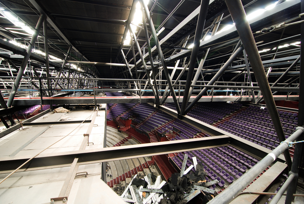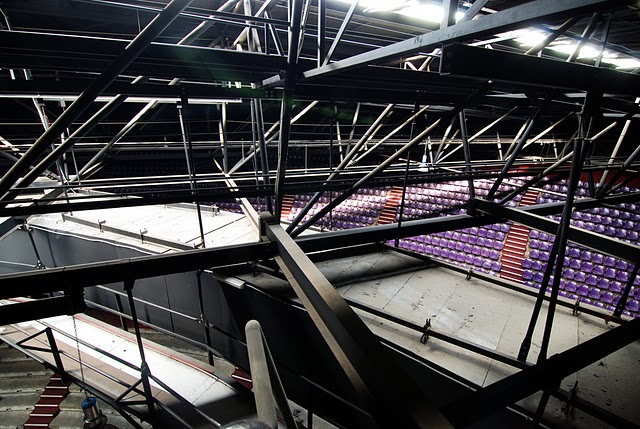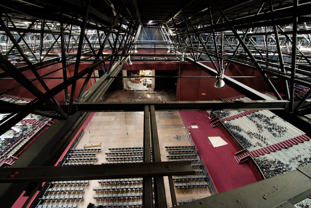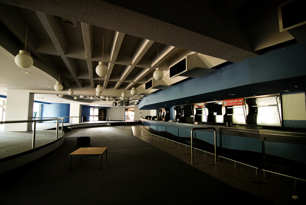 Naše cesta vedla do všech částí opuštěného stadionu. Ze zákulisí, do vznešených výšin osvětlovací soupravy, do bludiště platforem instalovaných pro techniky kolem všech částí komplexu. Z horní části střechy, na VIP oblastech uvedených níže, kde se hvězdy přípravovaly pro jejich vstup na jeviště výše. Vzhledem k tomu, že RF Digga má strach z výšek a já měl skepsi chodit přes rezavé zavěšené schodiště například v úplné tmě, to byl náročný den pro nás oba. Nakonec si ale myslím, že je to krásná budova, jejíž fotografie naleznete níže. Zachytili jsme okamžiky zastaveného času tohoto kina.