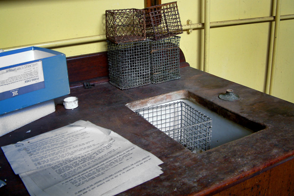 Tato klinická laboratoř je v pasti času, jsou zde vědecké přístroje, láhve a protokoly. Police jsou plné knih o nemoci a fyziologii mozku.