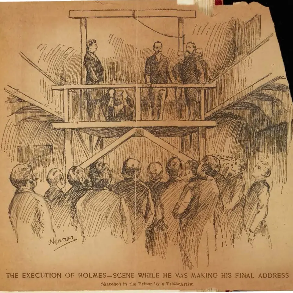 Jeho konec přišel až v roce 1894, kdy byl zatčen za krádež koně. Následně ho policie začala vyšetřovat a prohledala i jeho dům, kterému novináři začali říkat „vražedný hrad“. Holmes se přiznal k 27 vraždám, ale předpokládá se, že jich bylo víc. 7. května 1896 ho oběsili a jeho dům zbourali v roce 1938.